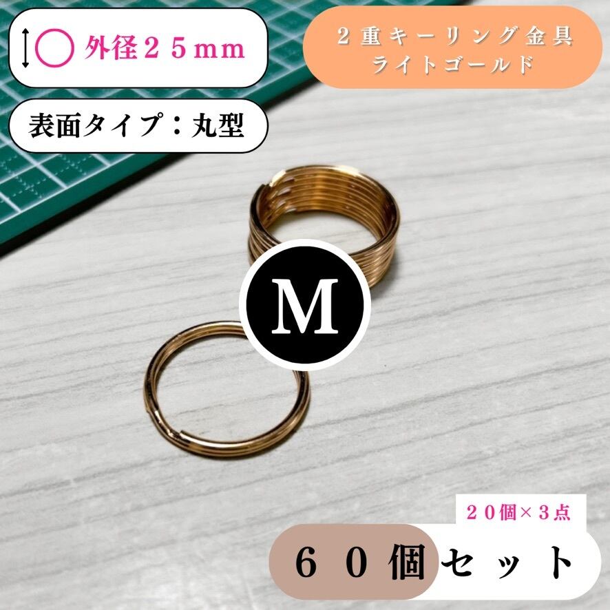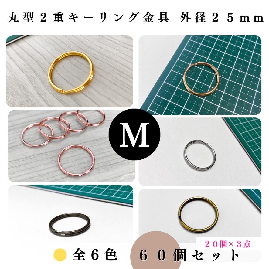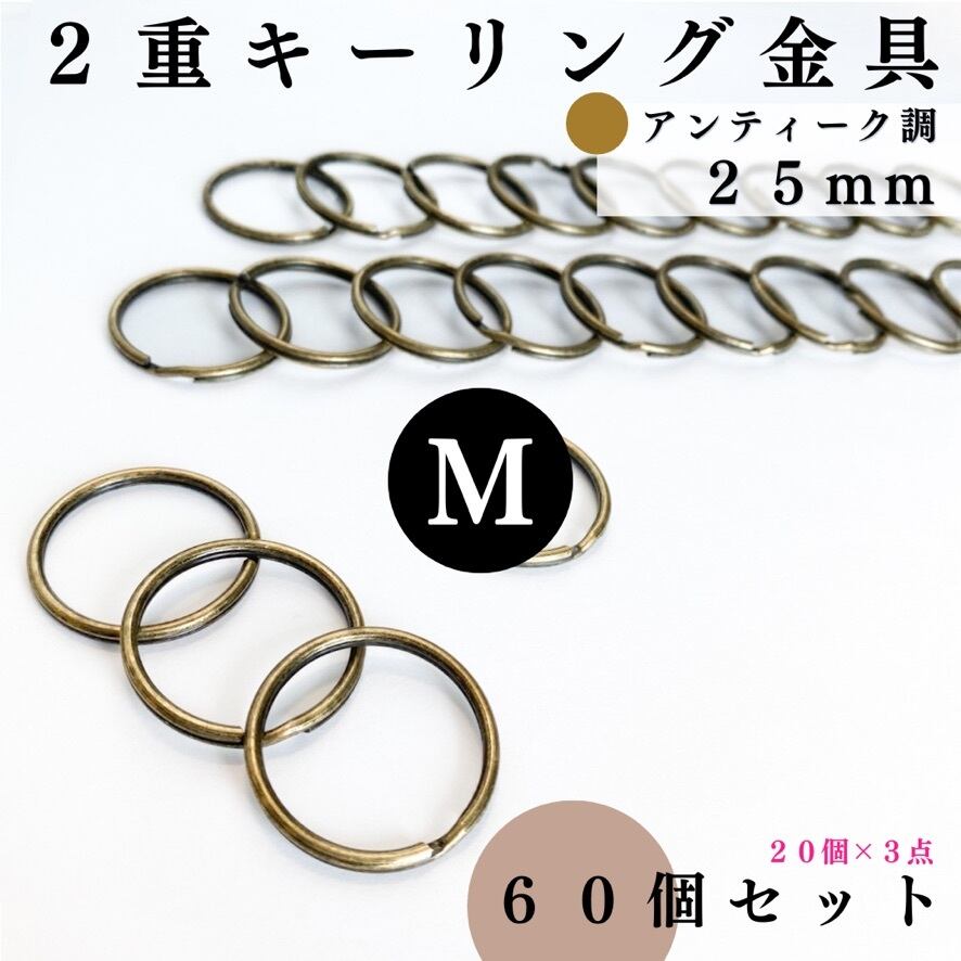 【全6色】丸型2重キーリング金具 外径25mm 60個セット|ゴールド, シルバー, シルバーブラック, アンティーク調, ライトゴールド, ピンクゴールド【20個入りより低単価】【一定金額で送料0円】
