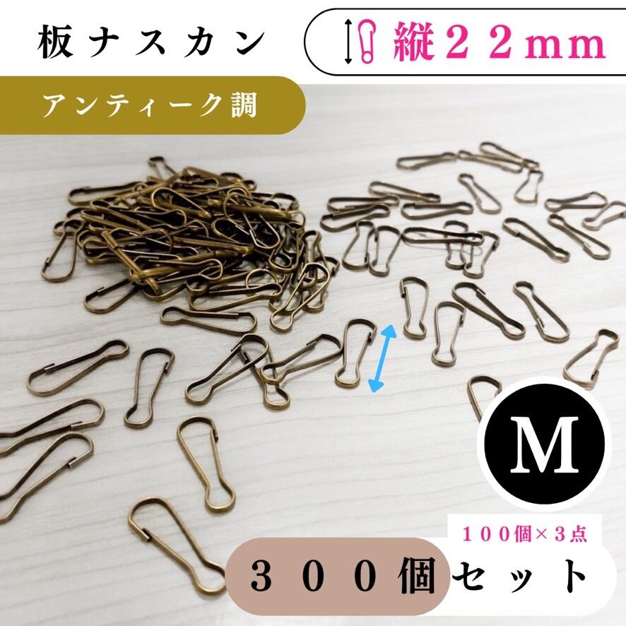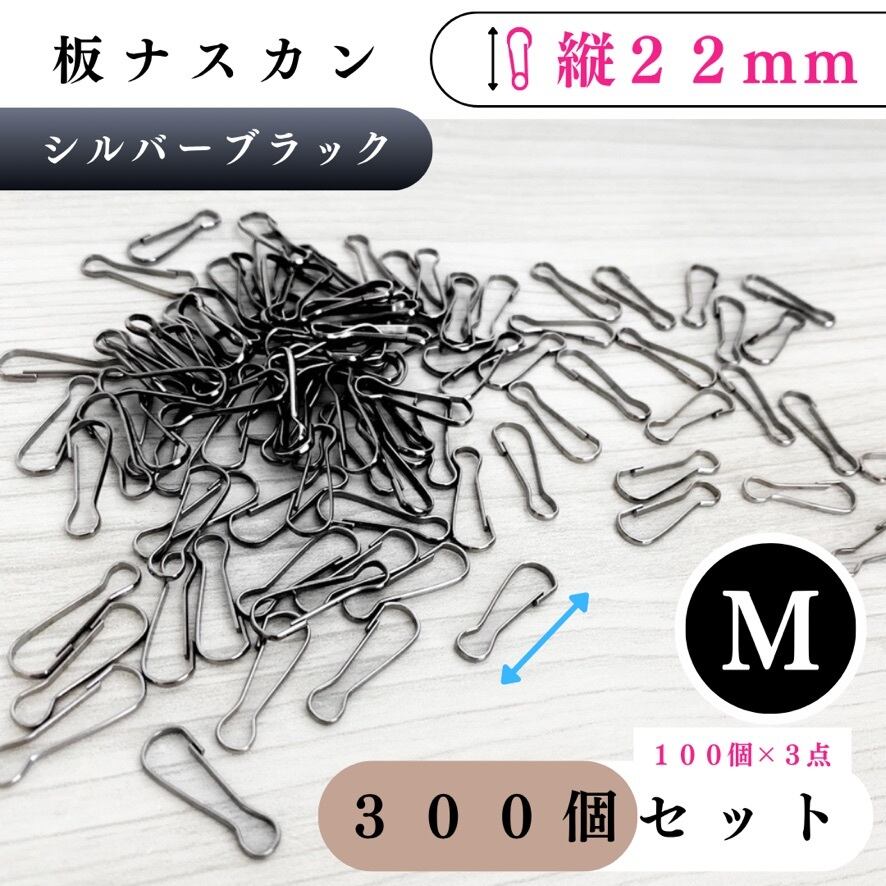 【全6色】板ナスカン 縦22mm 300個|ゴールド, シルバー, シルバーブラック, アンティーク調, ライトゴールド, ホワイトシルバー【100個入りより低単価】【各種割引有り】【送料0円】