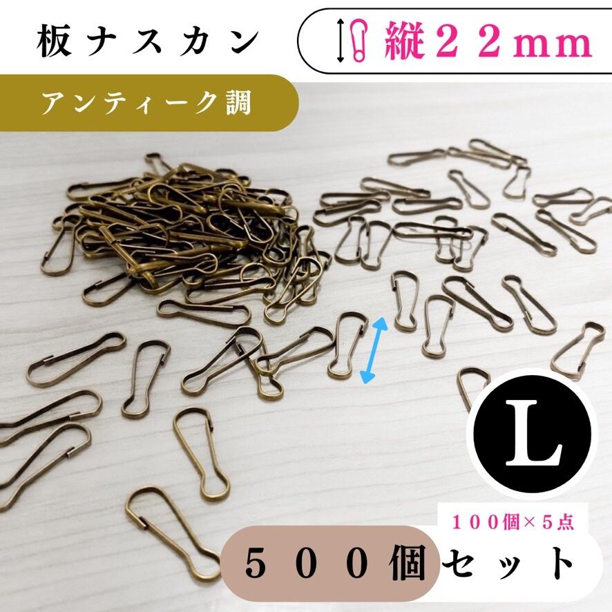 【全6色】板ナスカン 縦22mm 500個|ゴールド, シルバー, シルバーブラック, アンティーク調, ライトゴールド, ホワイトシルバー【100, 300個入りより低単価】【各種割引有り】【送料0円】