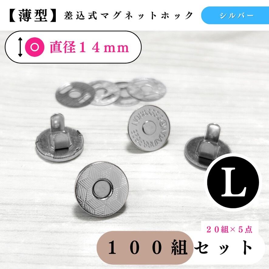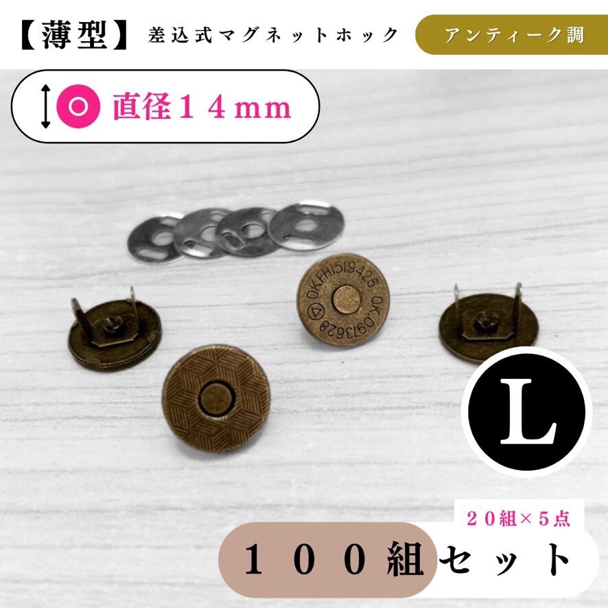 【薄型】差込式マグネットホック 14mm 100組【全4色】シルバー, シルバーブラック, アンティーク調, ライトゴールド【20, 60個入りより低単価】【一定金額で送料0円】