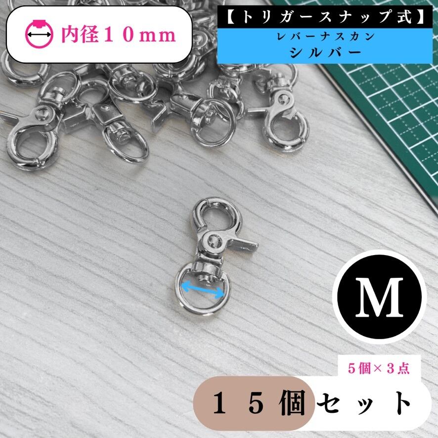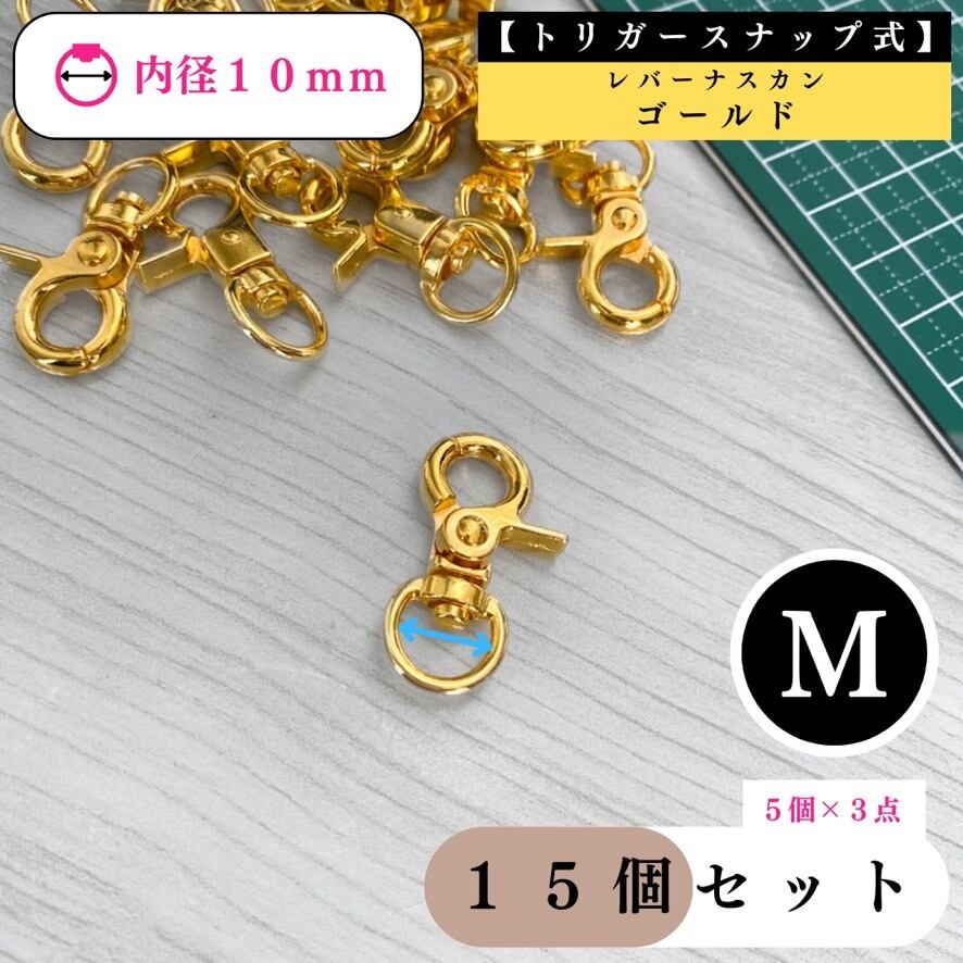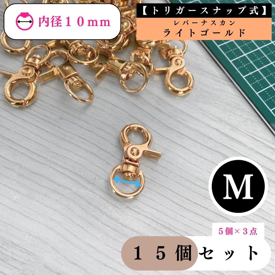 【トリガースナップ式】レバーナスカン 内径10mm 15個セット【全3色:ゴールド, シルバー, ライトゴールド】【5個入より低単価】【一定金額以上で送料0円】