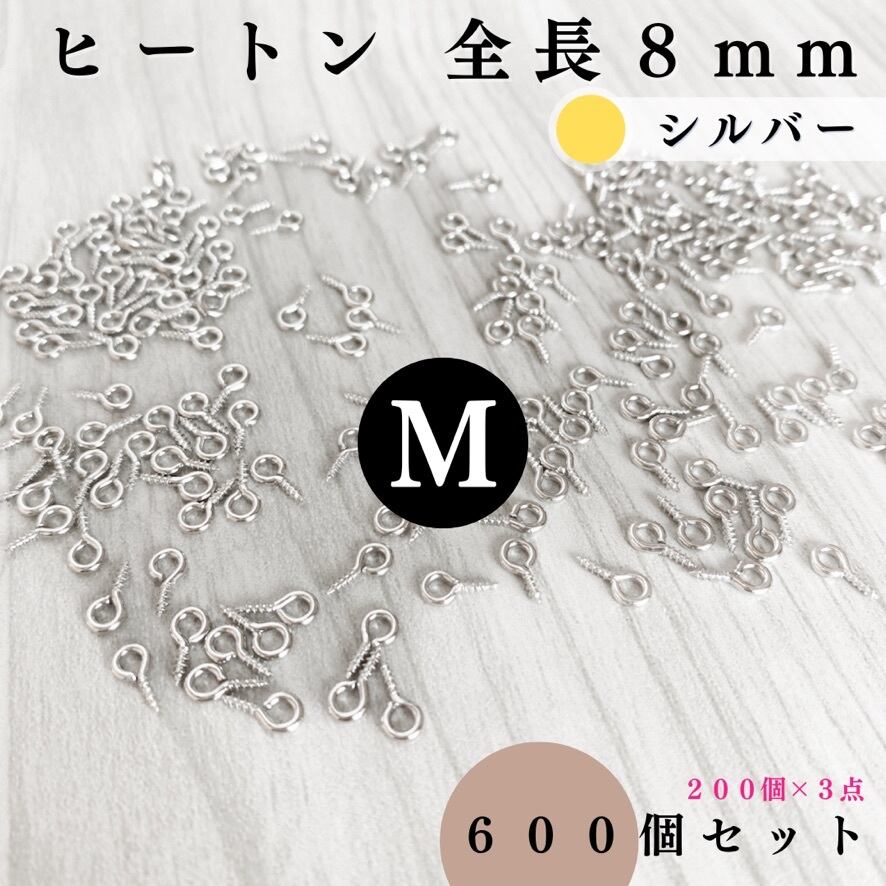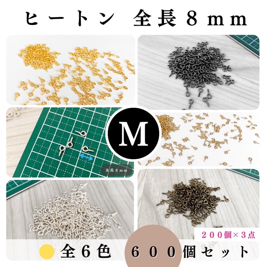 【全6色】ヒートン 8mm 約600個セット|ゴールド, シルバー, シルバーブラック, アンティーク調, ライトゴールド, ホワイトシルバー【200個入より低単価】【一定金額で送料0円】