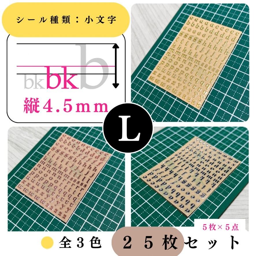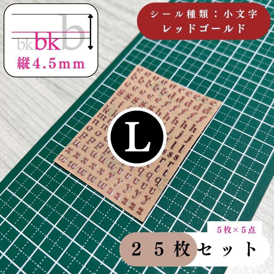 【全3色】【縦4.5mm】アルファベットシール 小文字 25枚セット|ゴールド, シルバー, レッドゴールド|ハンドメイド素材・レジン・文字【5, 15枚入りより低単価】【一定金額で送料0円】