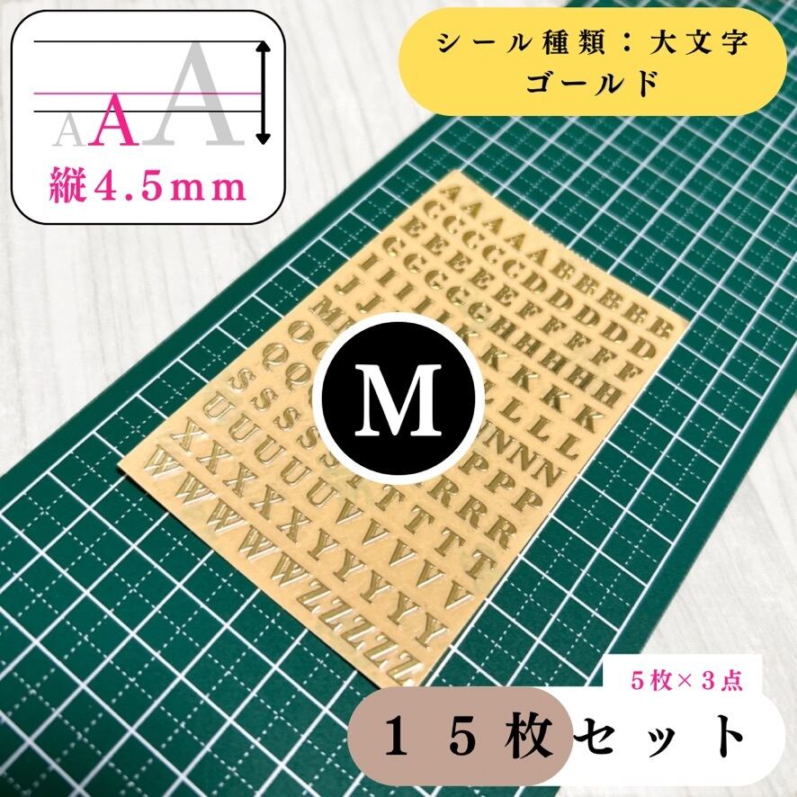 【全3色】【縦4.5mm】アルファベットシール 大文字 15枚セット|ゴールド, シルバー, レッドゴールド|ハンドメイド素材・レジン・文字【5枚入りより低単価】【一定金額で送料0円】