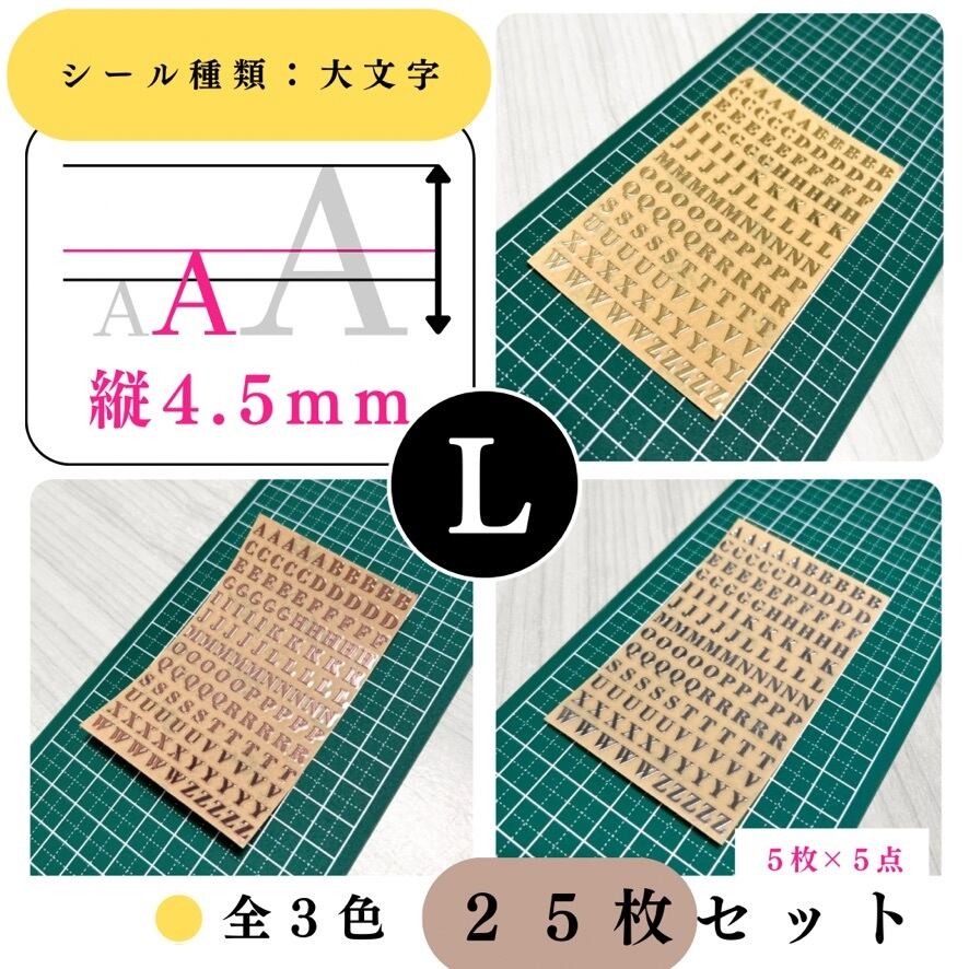 【全3色】【縦4.5mm】アルファベットシール 大文字 25枚セット|ゴールド, シルバー, レッドゴールド|ハンドメイド素材・レジン・文字【5, 15枚入りより低単価】【一定金額で送料0円】