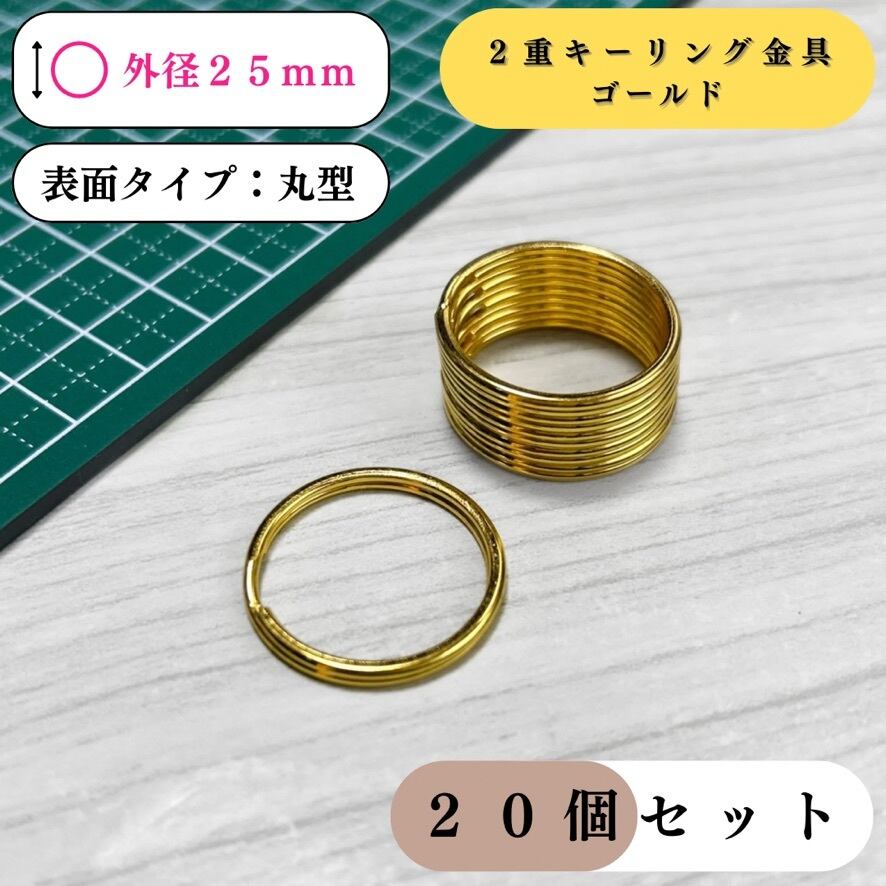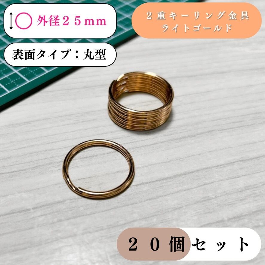 【全6色】丸型2重キーリング金具 外径25mm 20個セット|ゴールド, シルバー, シルバーブラック, アンティーク調, ライトゴールド, ピンクゴールド|ハンドメイド素材・アクセサリーパーツ【一定金額以上の購入で送料0円】