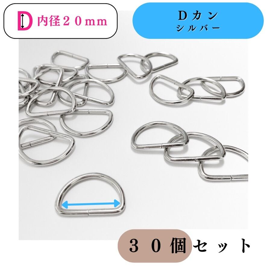 【全5色】Dカン 内径20mm 30個|ゴールド, シルバー, シルバーブラック, アンティーク調, ライトゴールド|ハンドメイド素材・レザークラフト【各種割引有り】