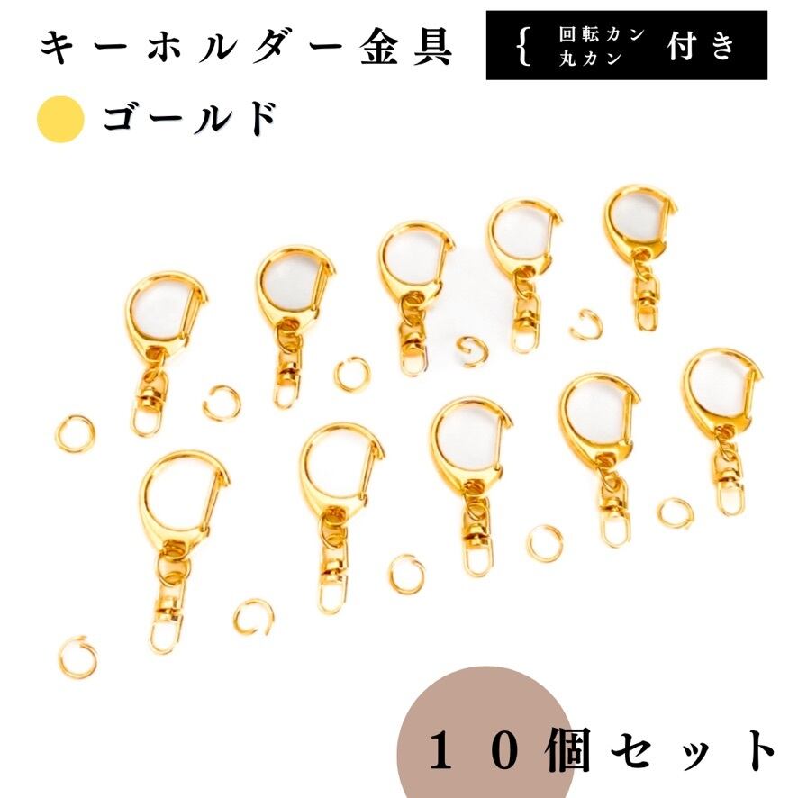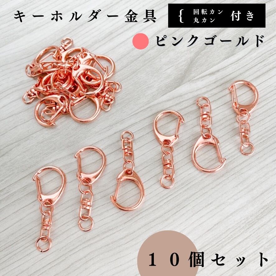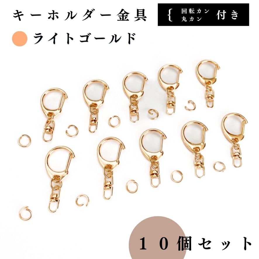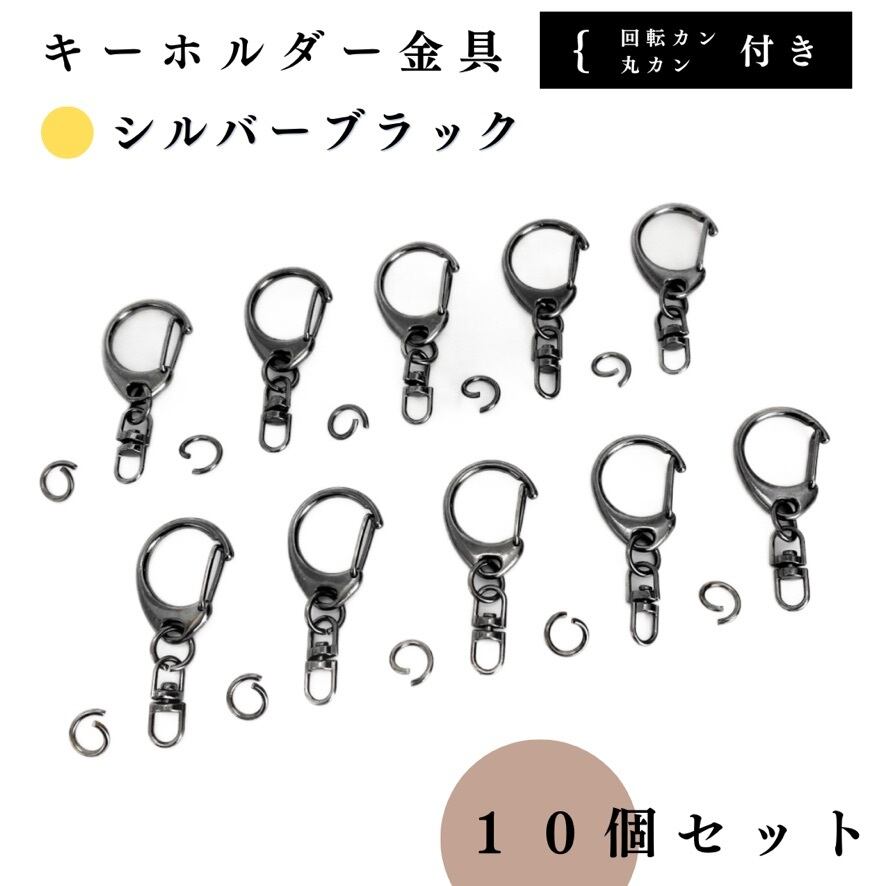 【全6色】キーホルダー金具 回転カン付き 10個セット|丸カン8mm付き|ゴールド, シルバー, シルバーブラック, アンティーク調, ライトゴールド, ピンクゴールド|ハンドメイド素材・アクセサリーパーツ【一定金額で送料0円】