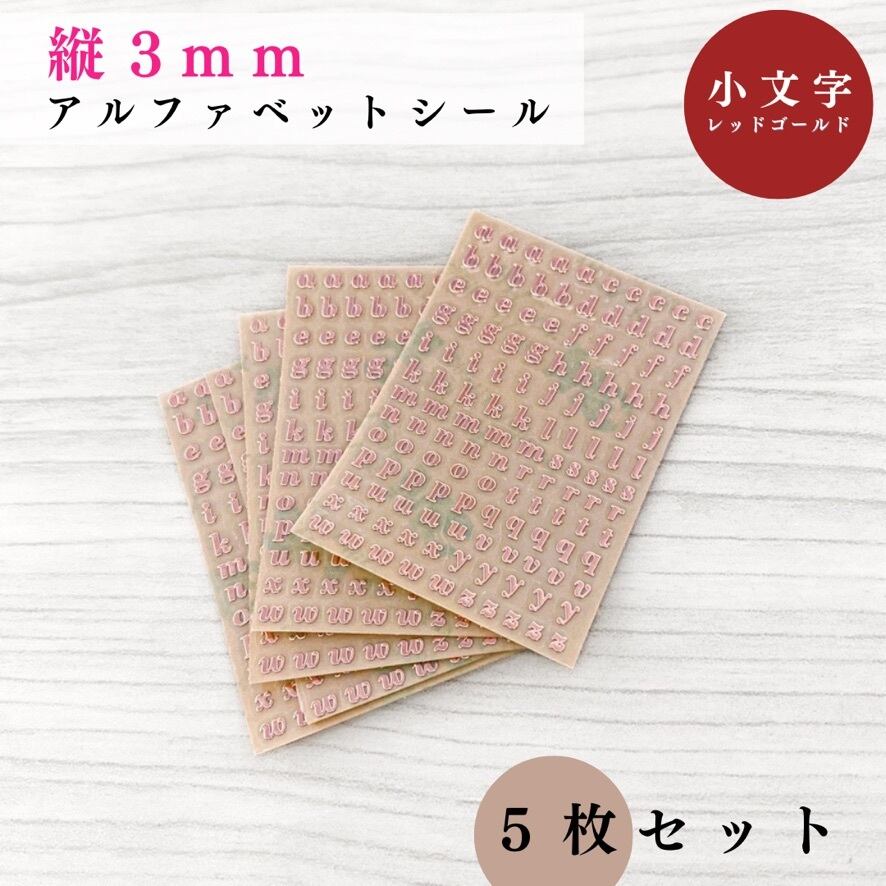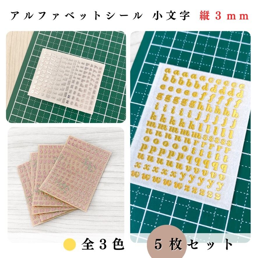 【全3色】【縦3mm】アルファベットシール 小文字 5枚セット|ゴールド, シルバー, レッドゴールド|ハンドメイド素材, レジン【一定金額で送料0円】
