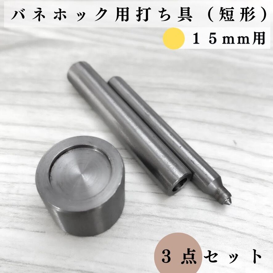 【対応サイズ:10, 15mm用】バネホック用打ち具&打ち台(短形)|3点セット|ハンドメイド道具・工具【一定金額で送料0円】
