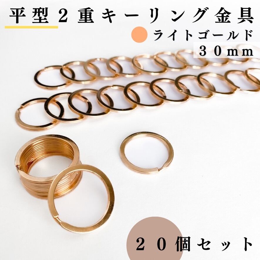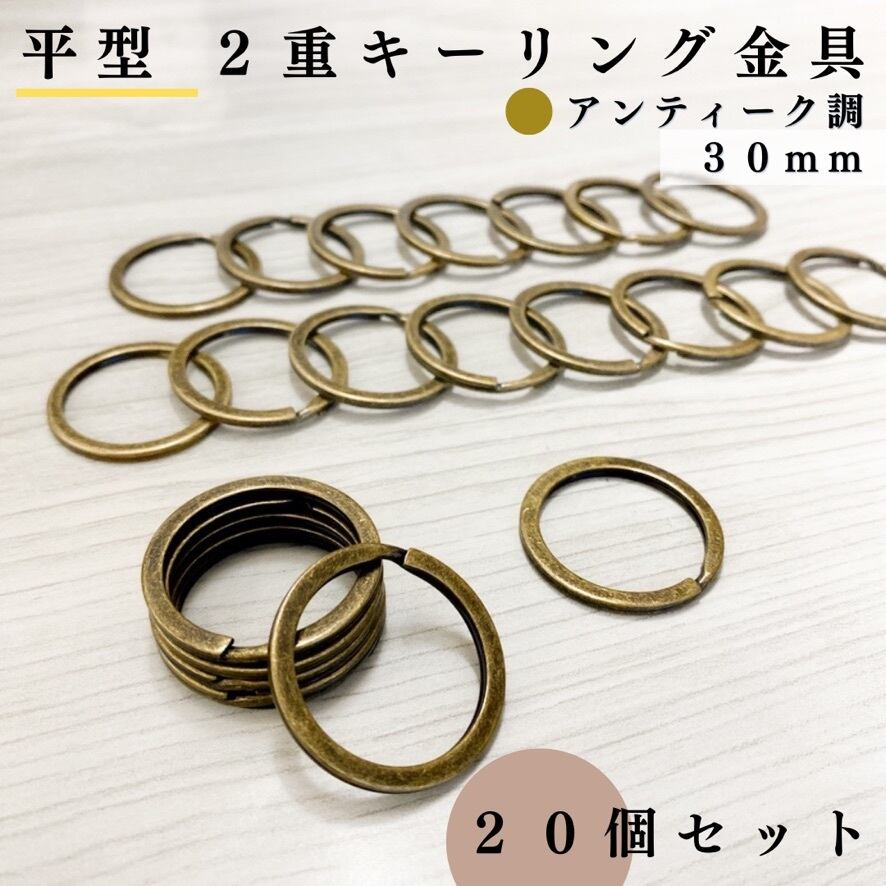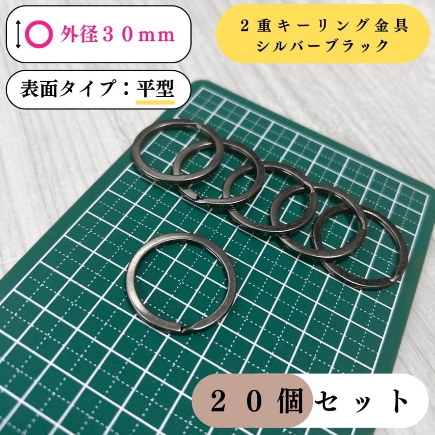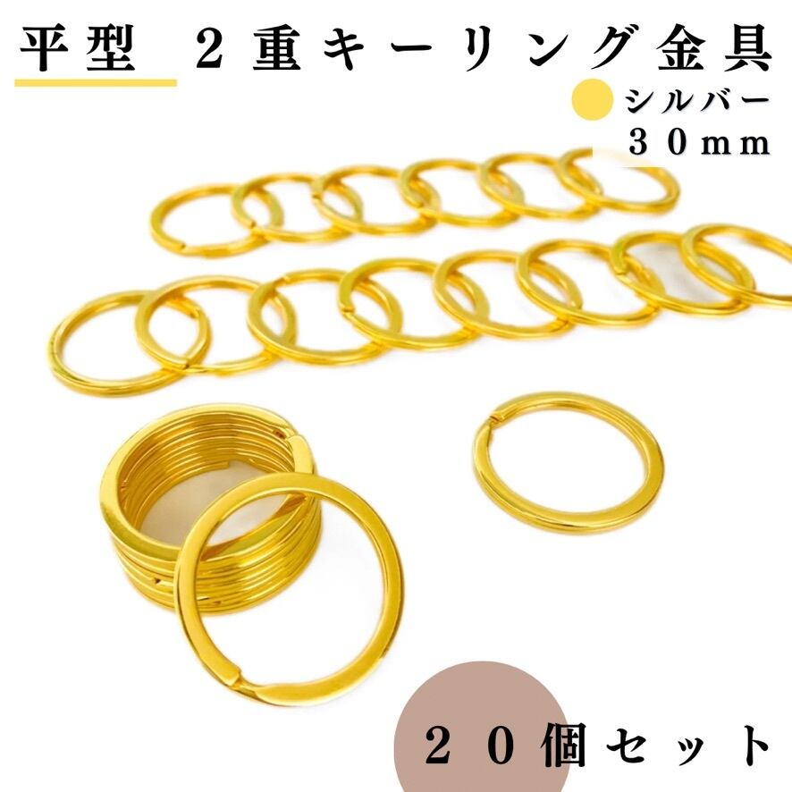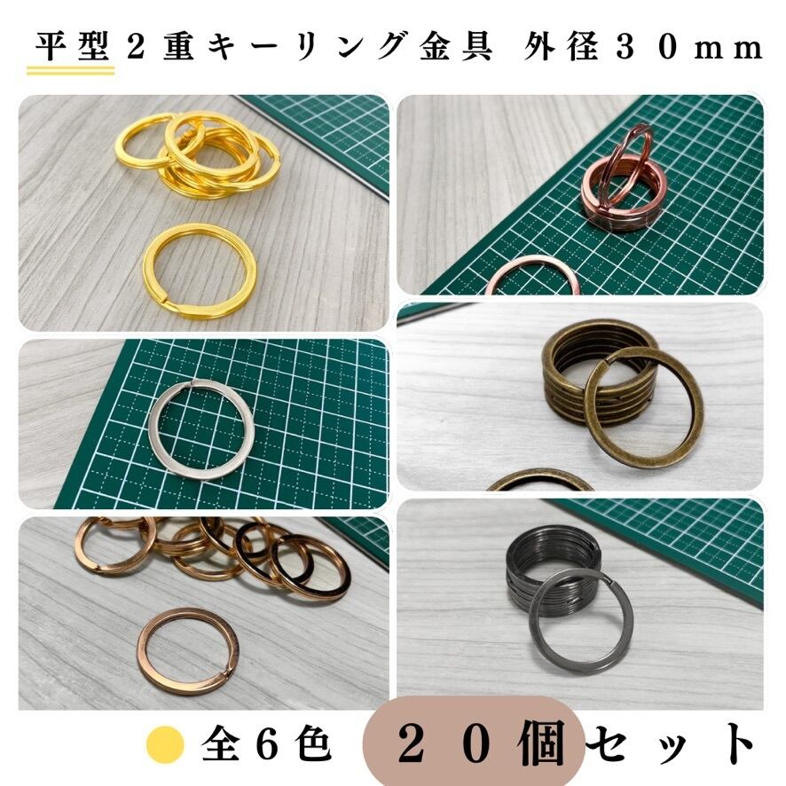 【全6色】平型2重キーリング金具 外径30mm 20個セット|ゴールド, シルバー, シルバーブラック, アンティーク調, ライトゴールド, ピンクゴールド【一定金額で送料0円】【まとめ買い割引有り】