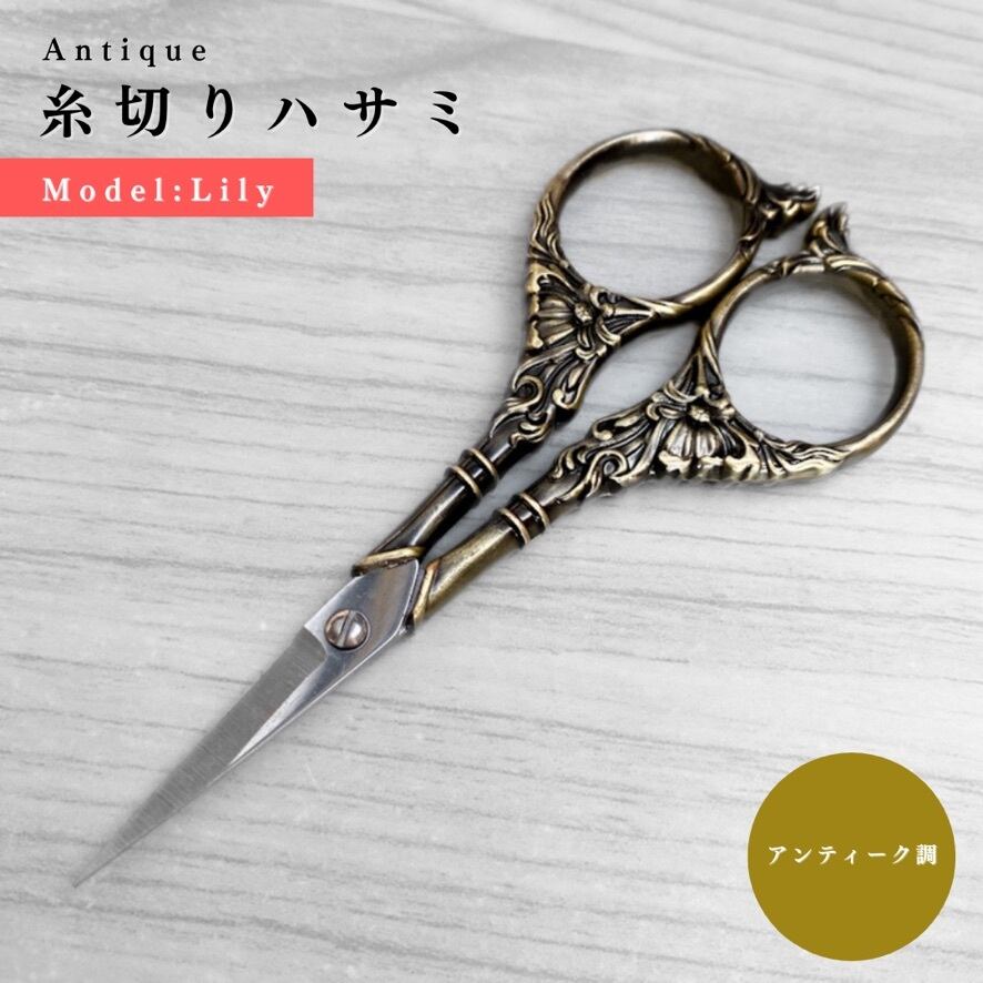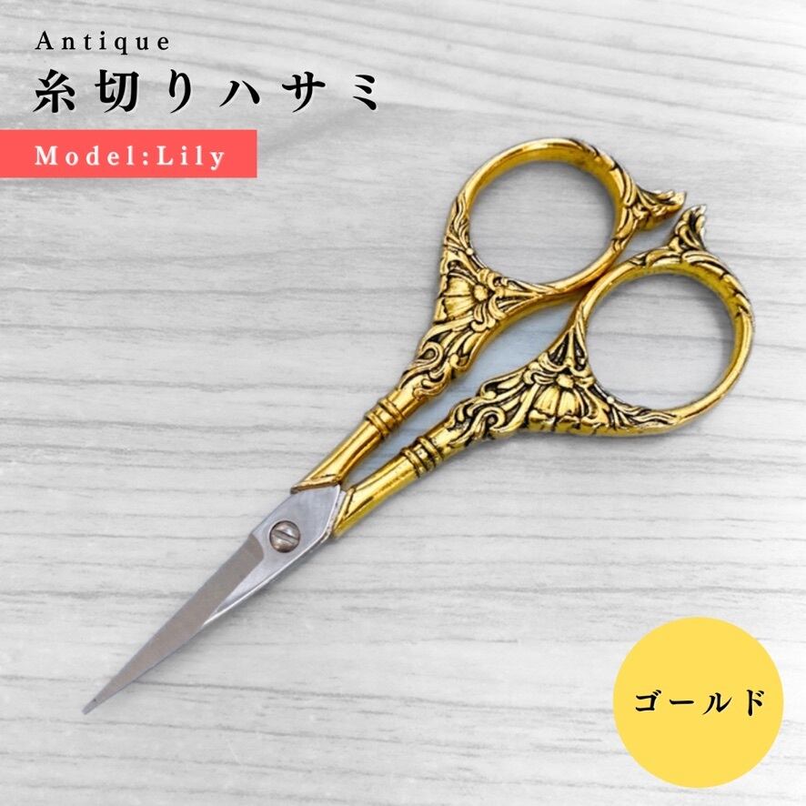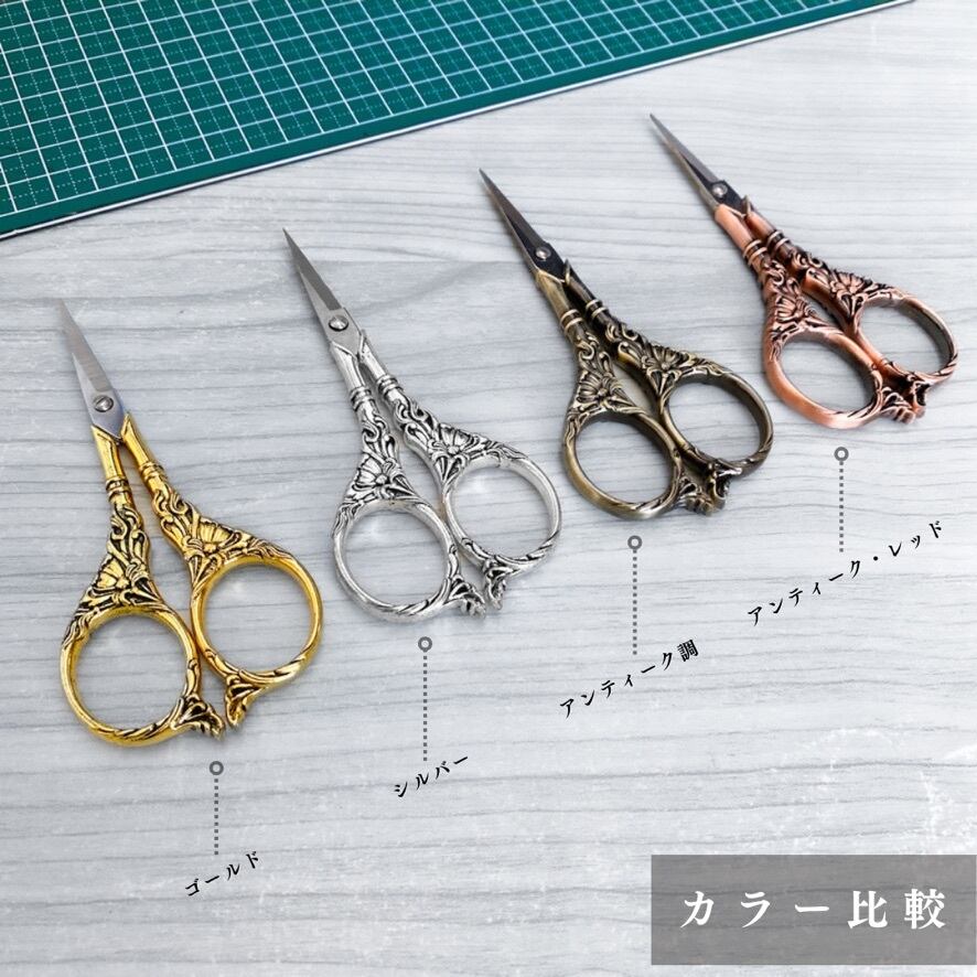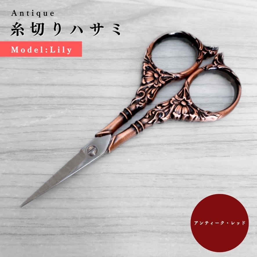 【全4色】【百合〜Lily】アンティーク糸切りハサミ|ゴールド, シルバー, アンティーク調, アンティーク・レッド|手芸道具・文房具【各種割引有り】【送料0円】
