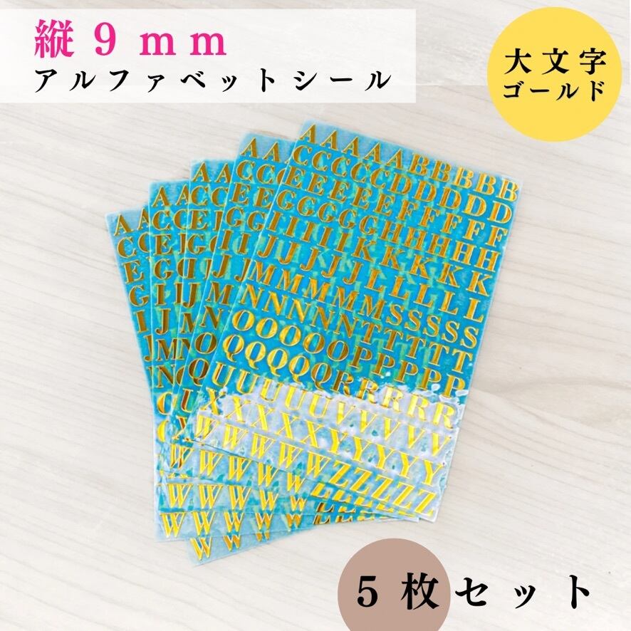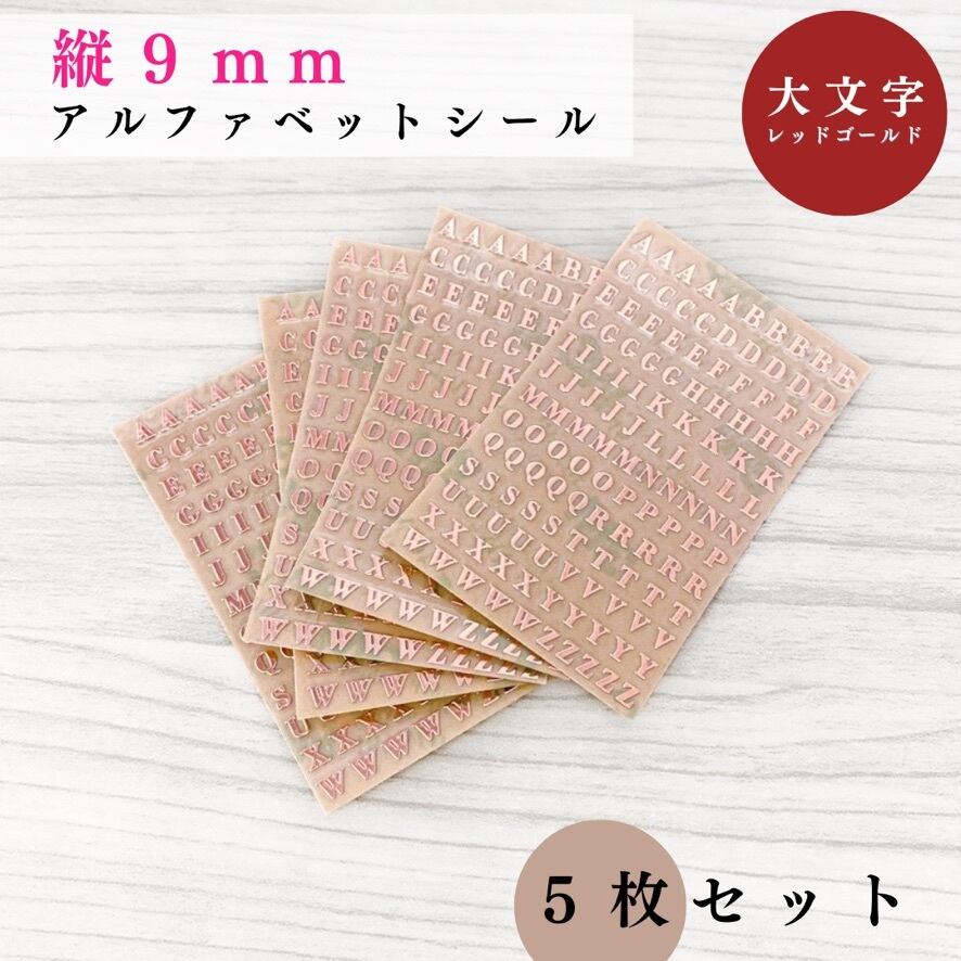 【全3色】アルファベットシール 大文字 縦9mm 5枚セット|ゴールド, シルバー, レッドゴールド|ハンドメイド素材, レジン【一定金額で送料0円】