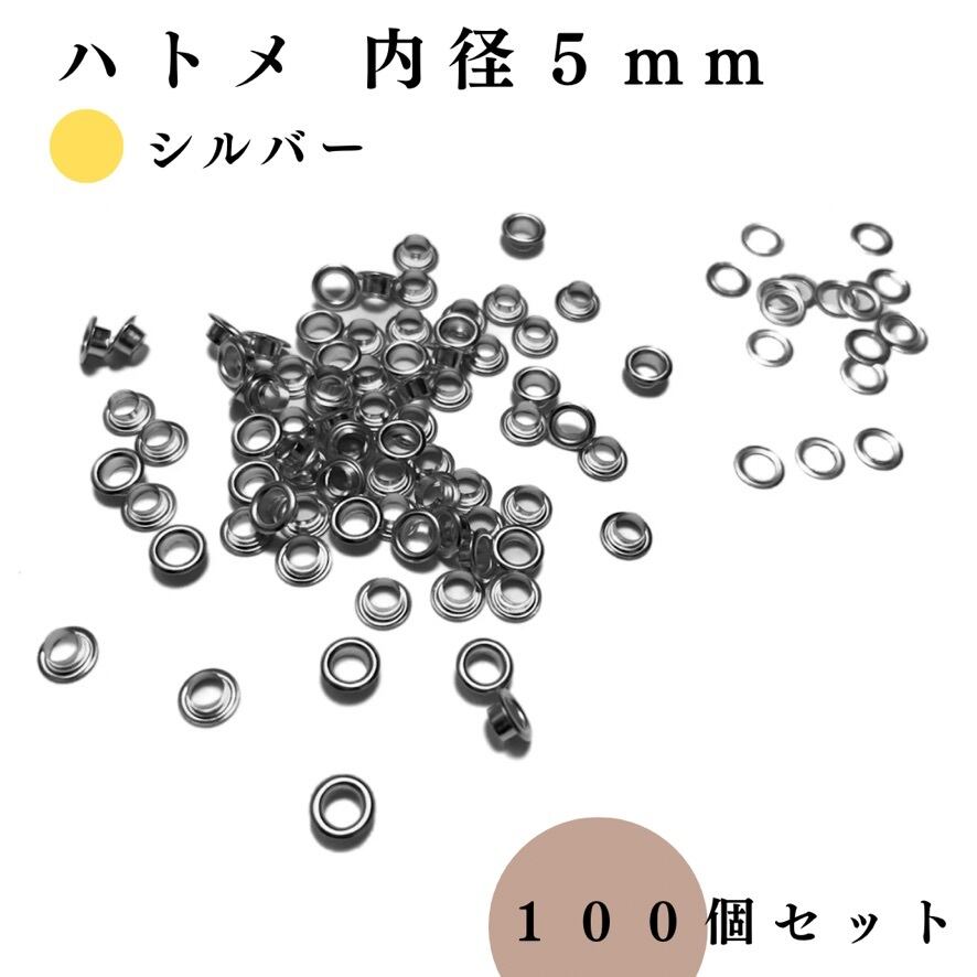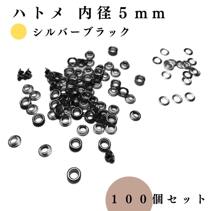 【全4色】ハトメ 内径5mm 100組セット|ゴールド, シルバー, シルバーブラック, アンティーク調【一定金額で送料0円】