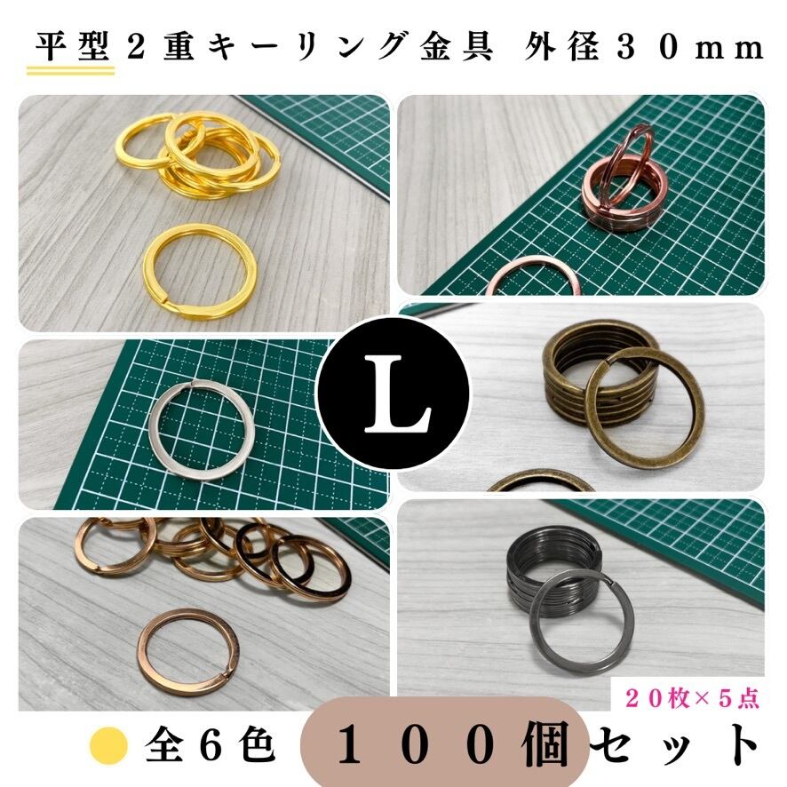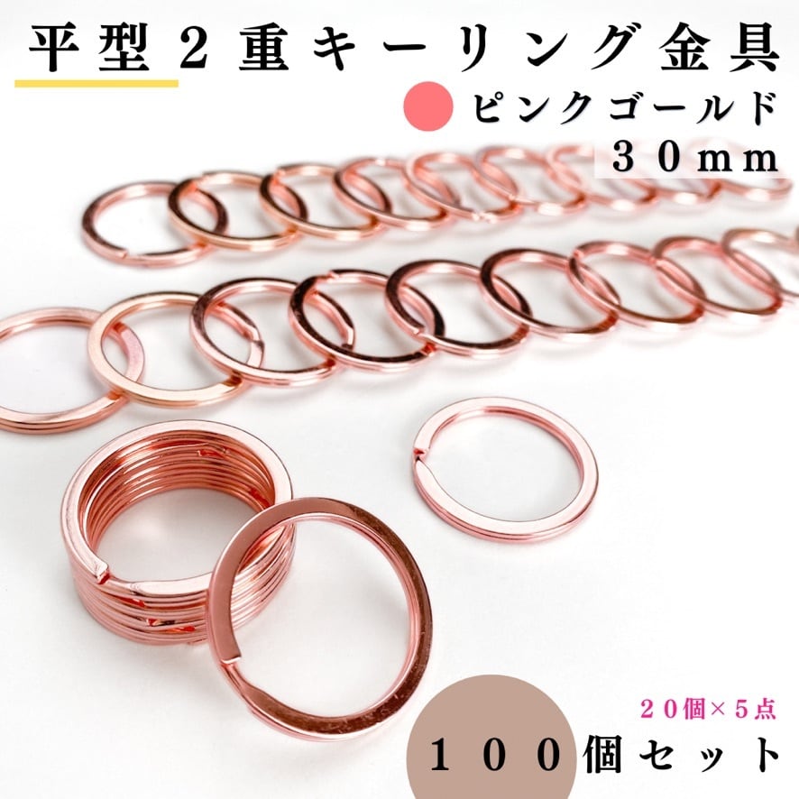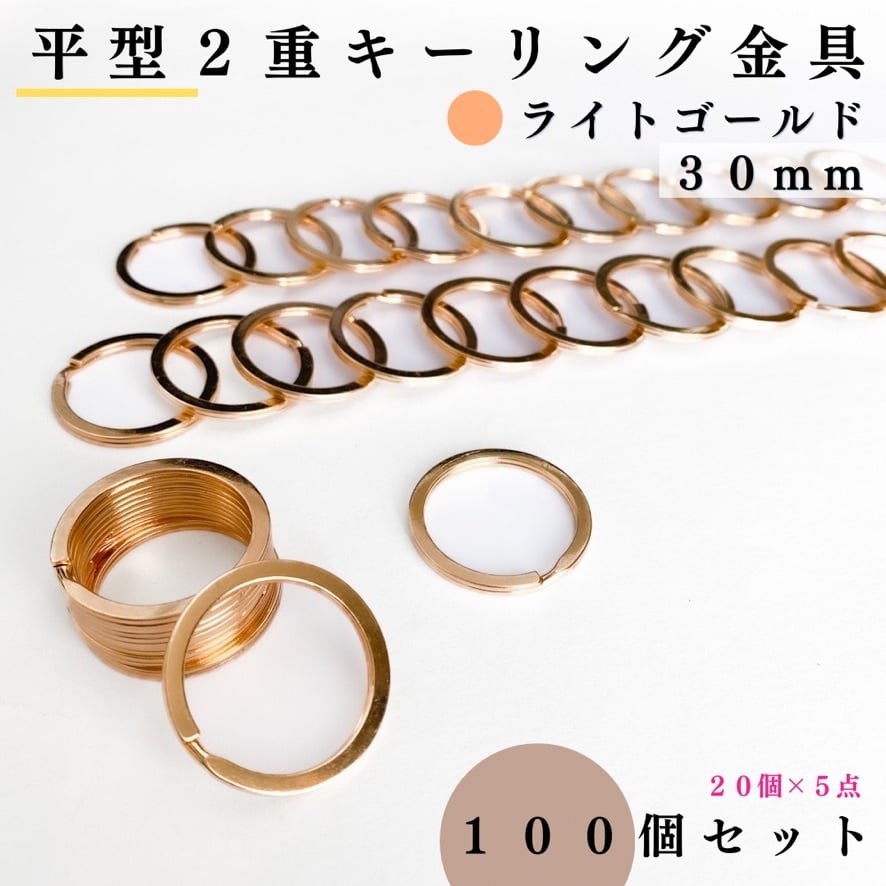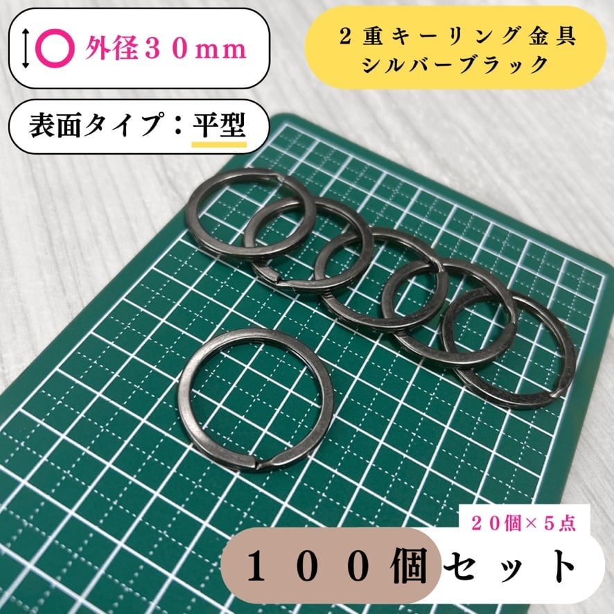 【全6色】平型2重キーリング金具 外径30mm 100個セット|ゴールド, シルバー, シルバーブラック, アンティーク調, ライトゴールド, ピンクゴールド【20, 60個入りより低単価】【一定金額で送料0円】