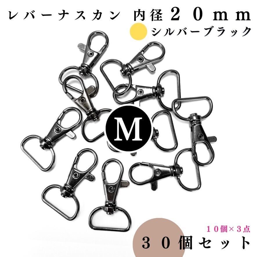 【全6色】レバーナスカン 内径20mm 30個セット|ゴールド, シルバー, シルバーブラック, アンティーク調, ライトゴールド, ピンクゴールド【10個入りより低単価】【一定金額で送料0円】