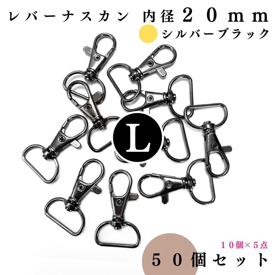 【全6色】レバーナスカン 内径20mm 50個セット|ゴールド, シルバー, シルバーブラック, アンティーク調, ライトゴールド, ピンクゴールド【10, 30個入りより低単価】【一定金額で送料0円】