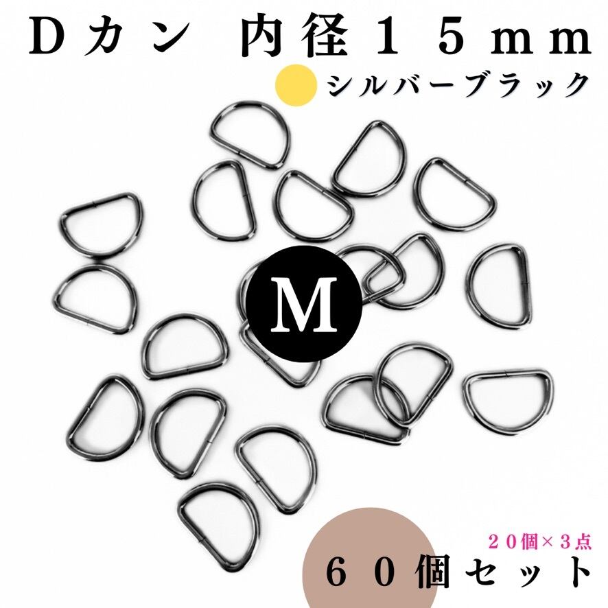 【全5色】Dカン 内径15mm 60個|ゴールド, シルバー, シルバーブラック, アンティーク調, ライトゴールド【20個入りより低単価】【各種割引有り】