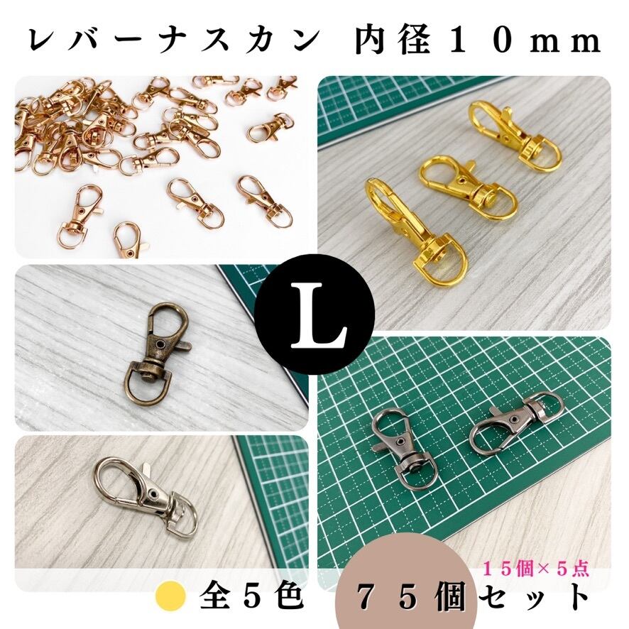 【全5色】レバーナスカン 内径10mm 75個セット|ゴールド, シルバー, シルバーブラック, アンティーク調, ライトゴールド【10個入りより低単価】【一定金額で送料0円】