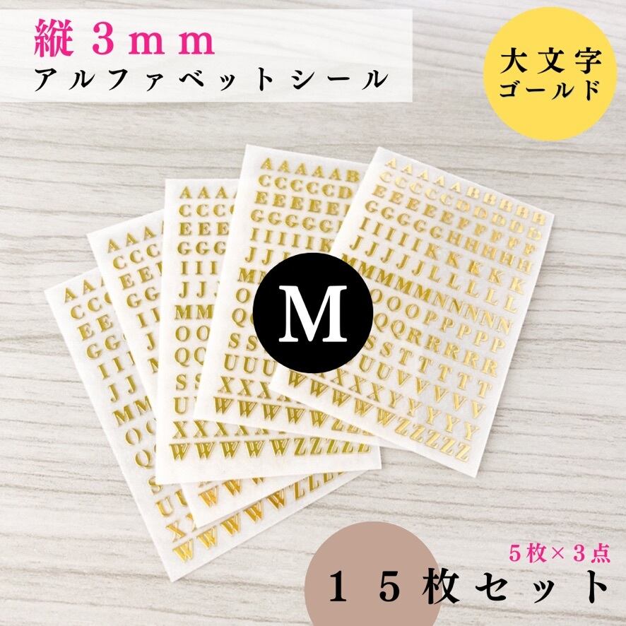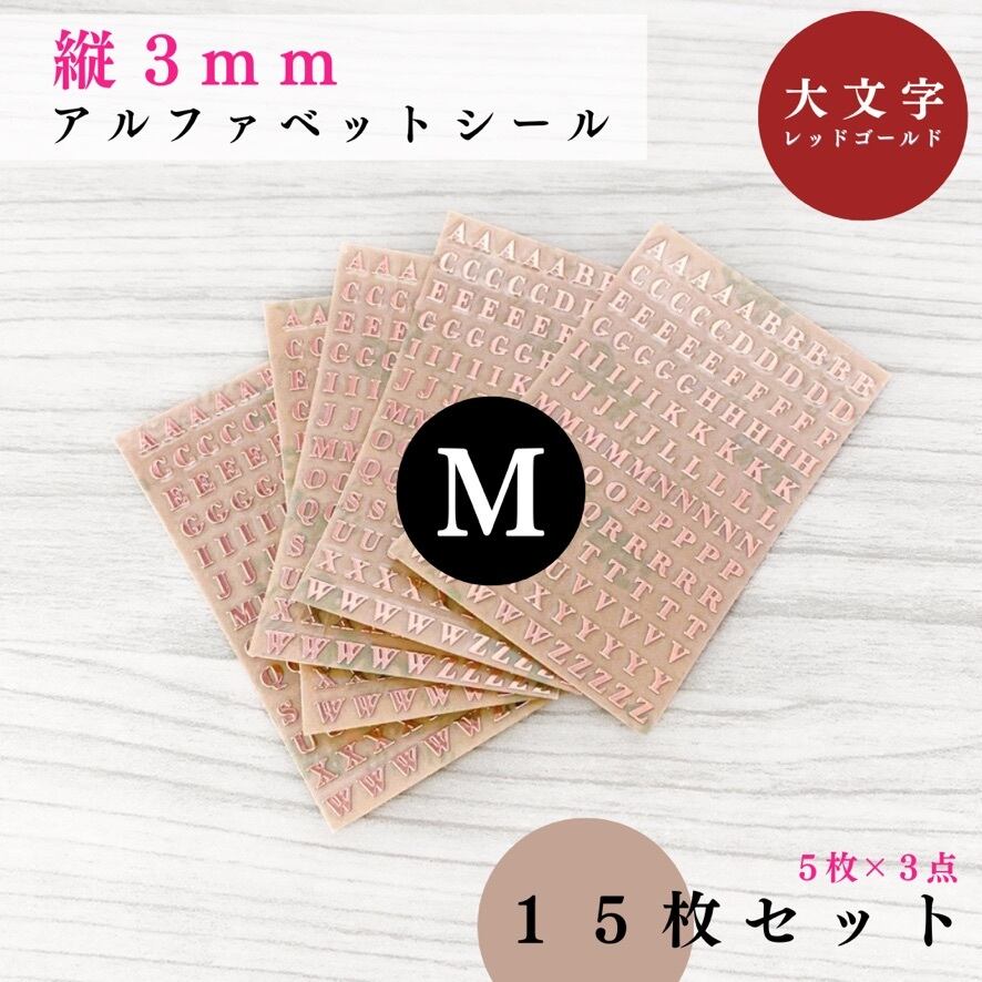 【全3色】【縦3mm】アルファベットシール 大文字 15枚セット|ゴールド, シルバー, レッドゴールド|ハンドメイド素材, レジン【5枚入りより低単価】【一定金額で送料0円】