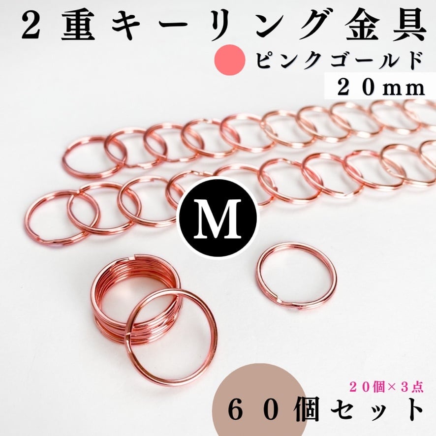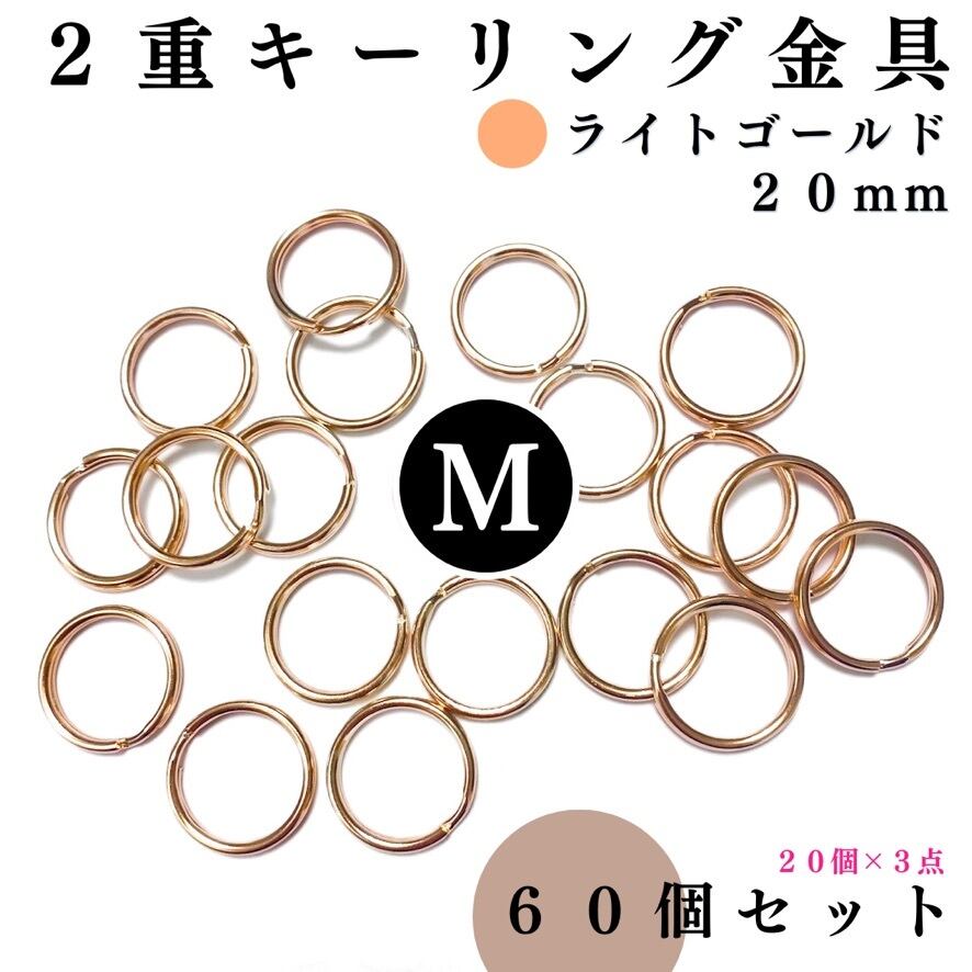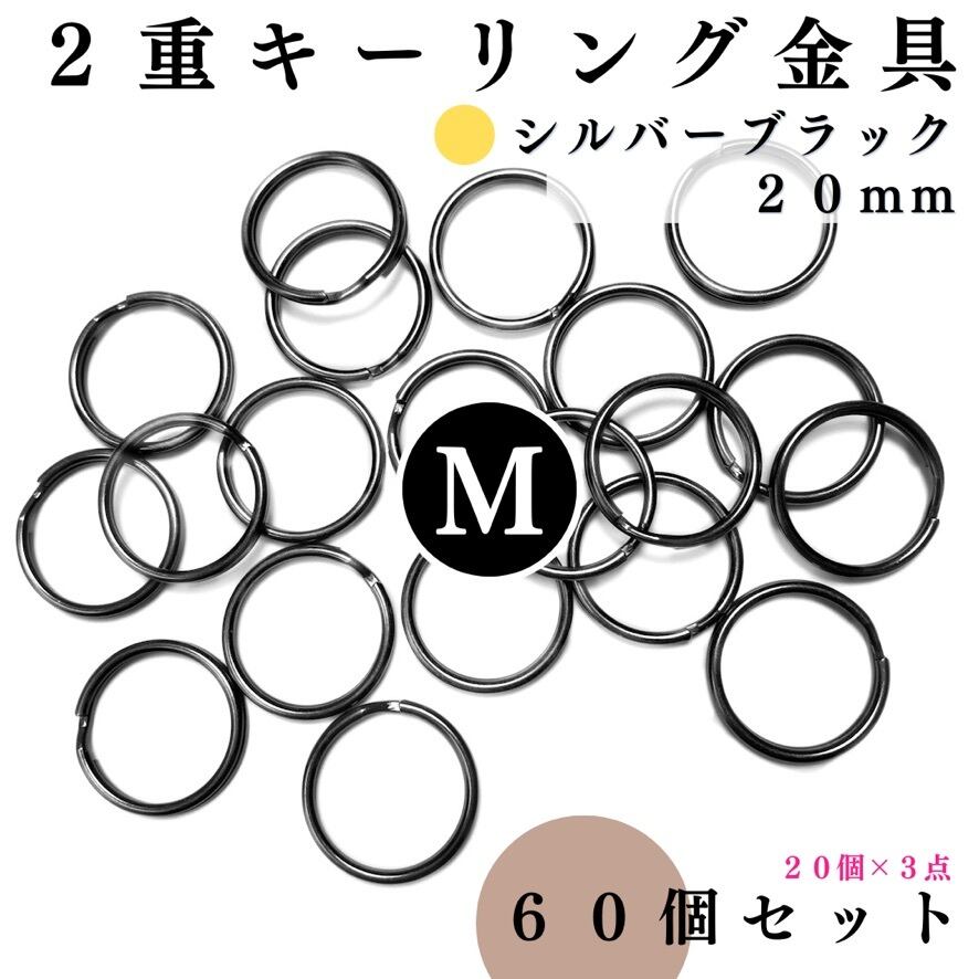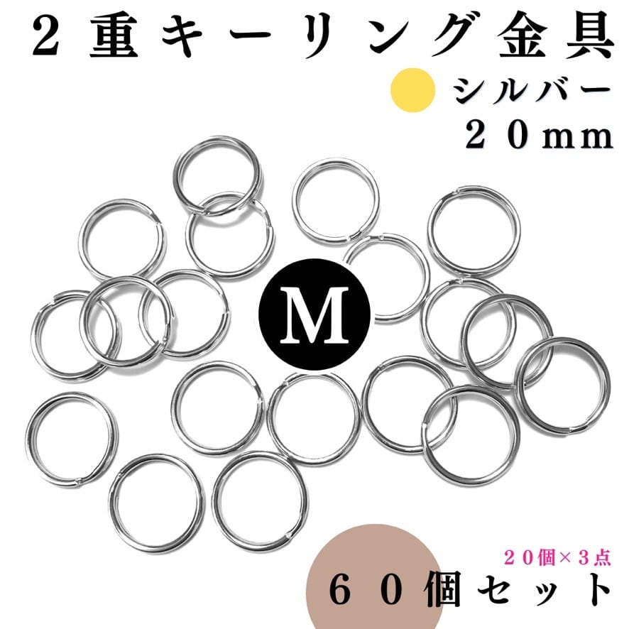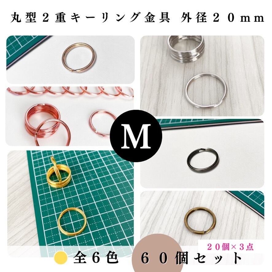 【全6色】丸型2重キーリング金具 外径20mm 60個セット|ゴールド, シルバー, シルバーブラック, アンティーク調, ライトゴールド, ピンクゴールド【20個入りより低単価】【一定金額で送料0円】