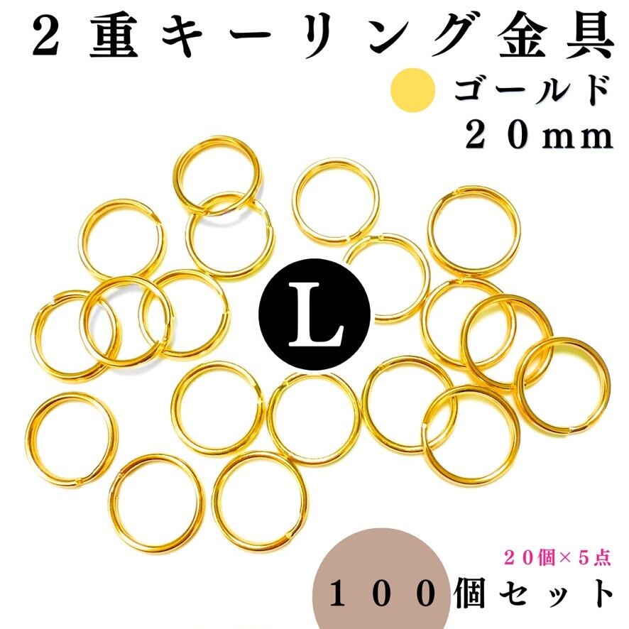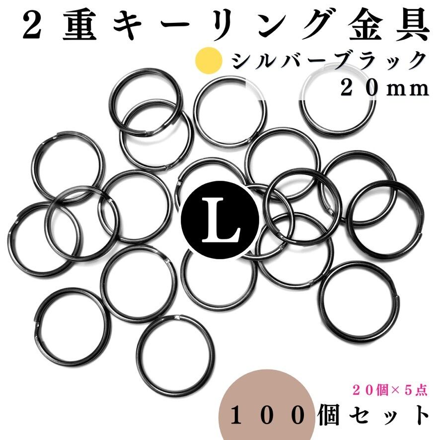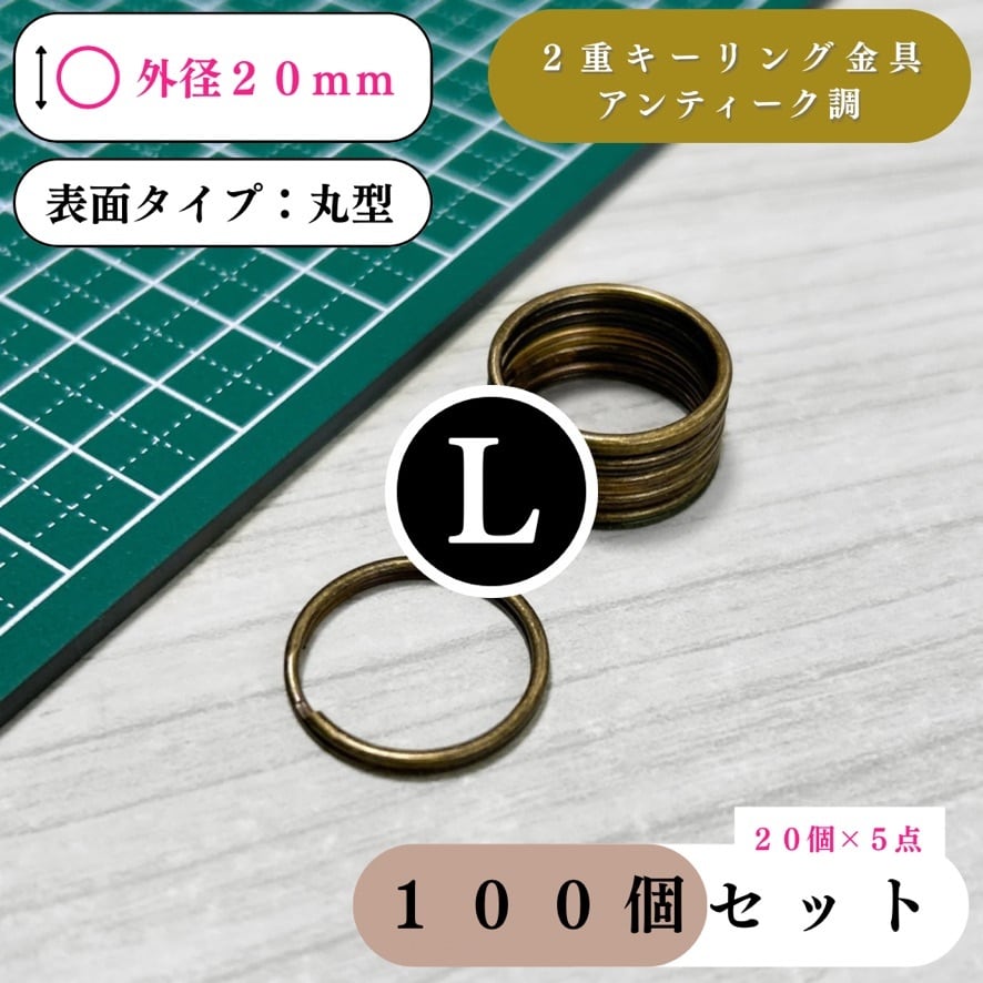 【全6色】丸型2重キーリング金具 外径20mm 100個セット|ゴールド, シルバー, シルバーブラック, アンティーク調, ライトゴールド, ピンクゴールド【20個入りより低単価】【一定金額で送料0円】