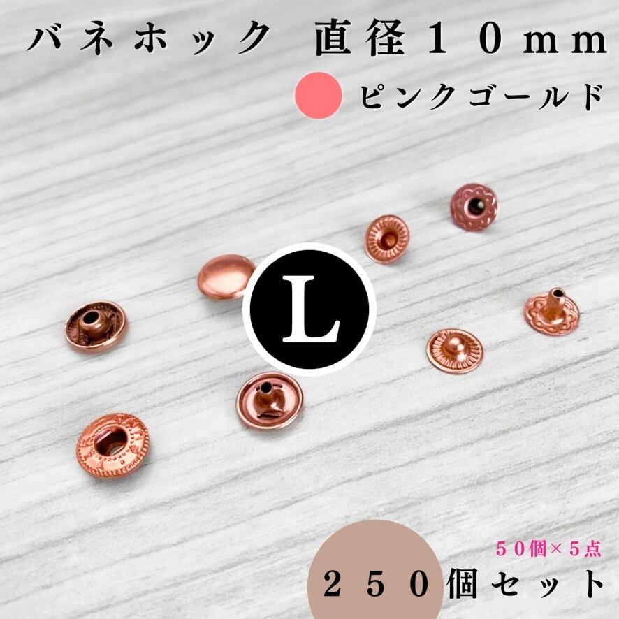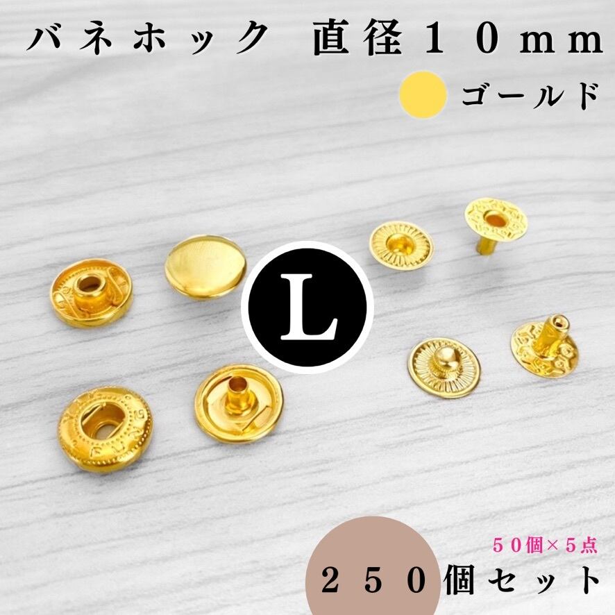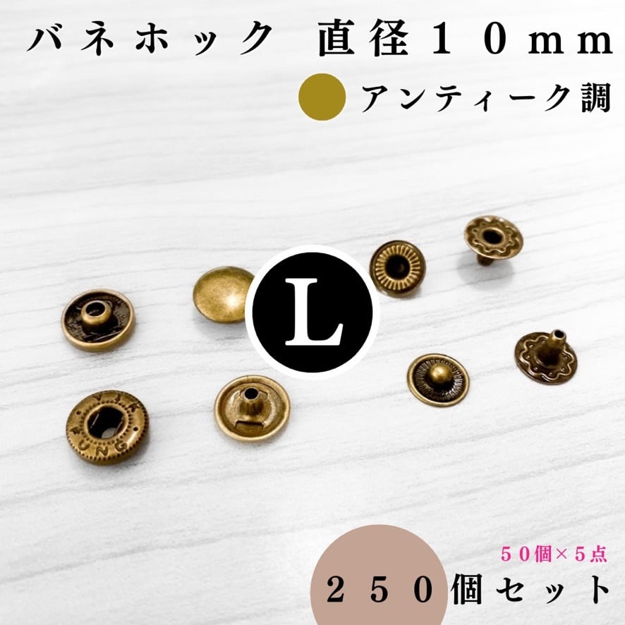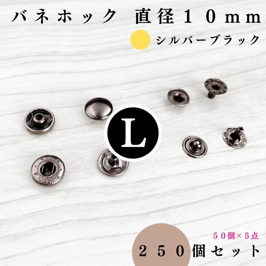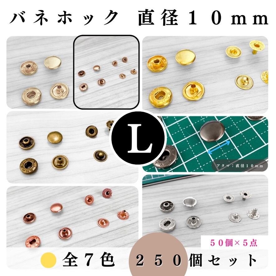 【全7色】バネホック アタマ直径10mm 250組セット|ゴールド, シルバー, シルバーブラック, アンティーク調, ライトゴールド, ピンクゴールド, ブロンズゴールド【一定金額で送料0円】【50, 150個入りより低単価】