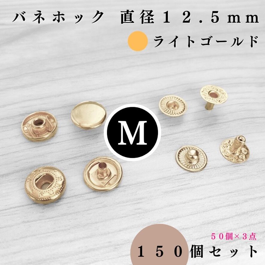 【全6色】バネホック アタマ直径12.5mm 150組|ゴールド, シルバー, シルバーブラック, アンティーク調, ライトゴールド, ピンクゴールド【50組入りより低単価】【一定金額で送料0円】