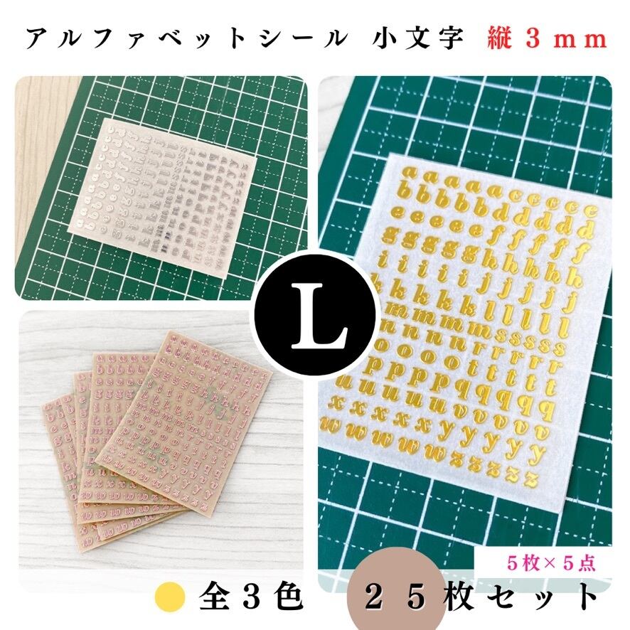 【全3色】【縦3mm】アルファベットシール 小文字 25枚セット|ゴールド, シルバー, レッドゴールド|ハンドメイド素材, レジン【5, 15枚入りより低単価】【一定金額で送料0円】