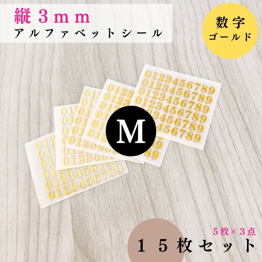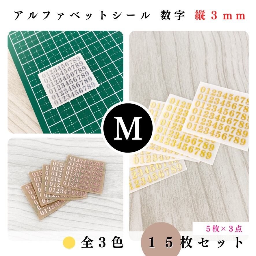 【全3色】【縦3mm】アルファベットシール 数字 15枚セット|ゴールド, シルバー, レッドゴールド|ハンドメイド素材, レジン【5枚入りより低単価】【一定金額で送料0円】