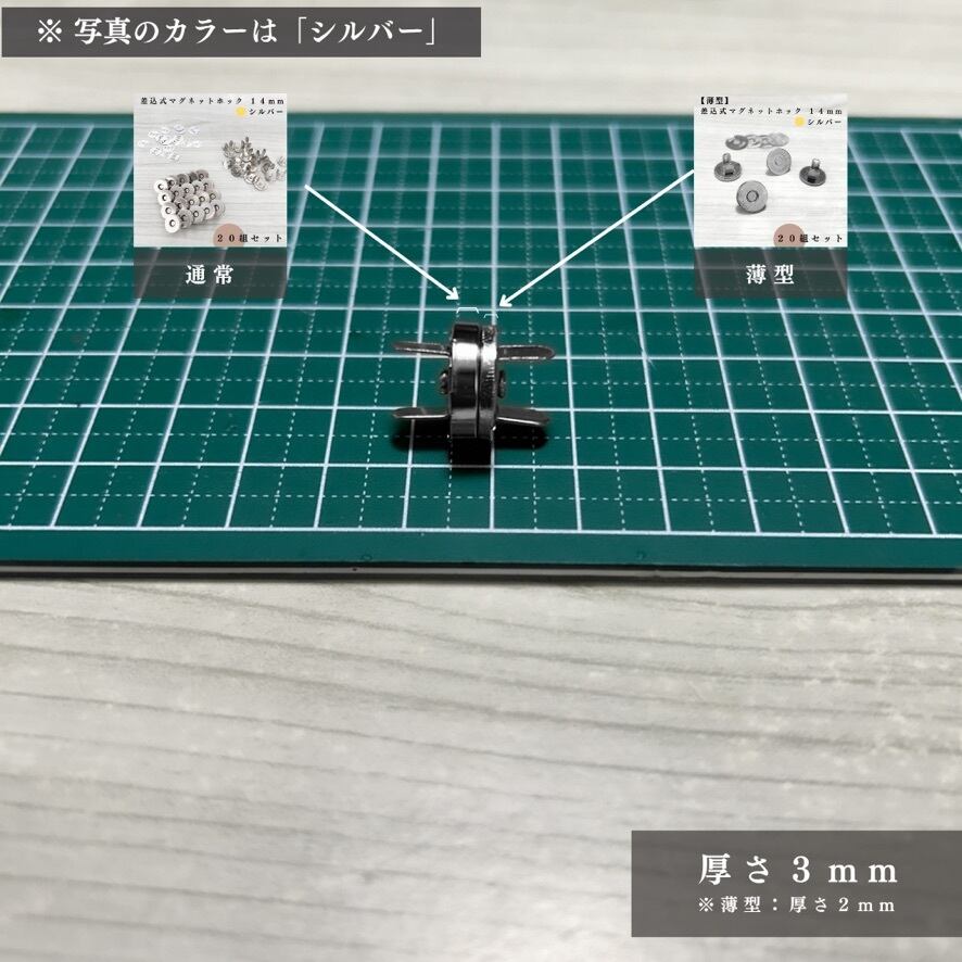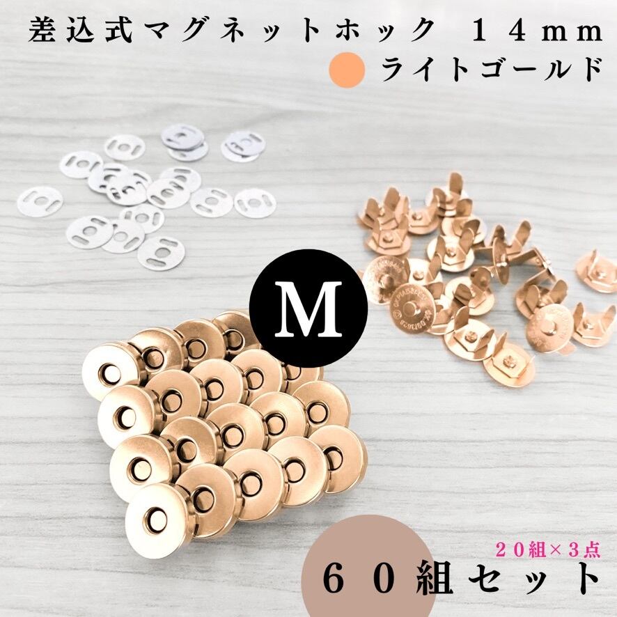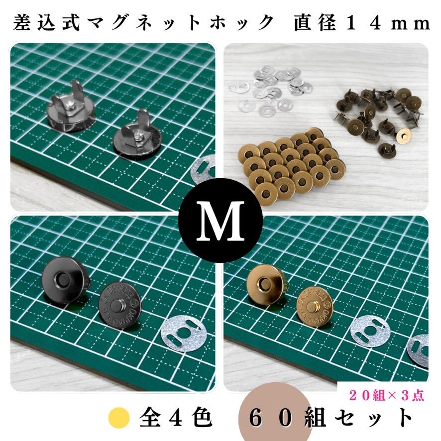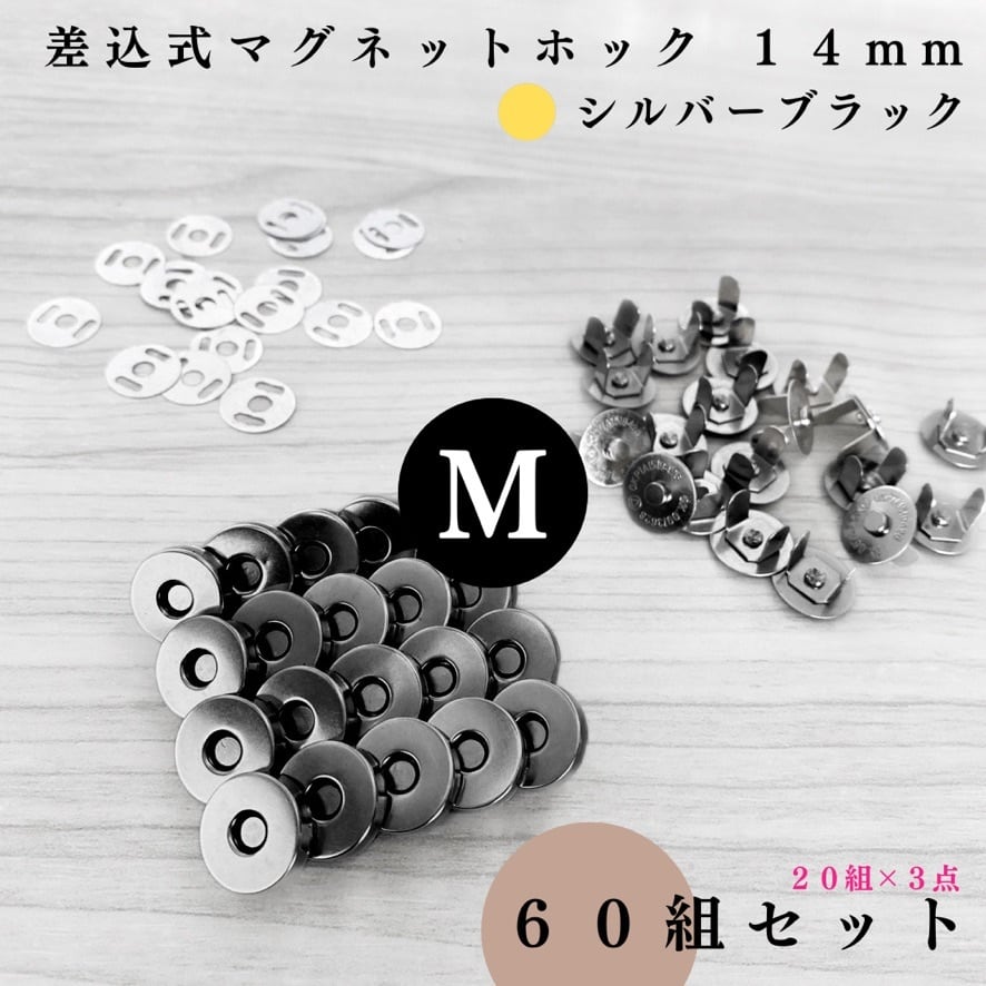 【全4色】差込式マグネットホック 14mm 60組セット|シルバー, シルバーブラック, アンティーク調, ライトゴールド【20個入りより低単価】【一定金額で送料0円】