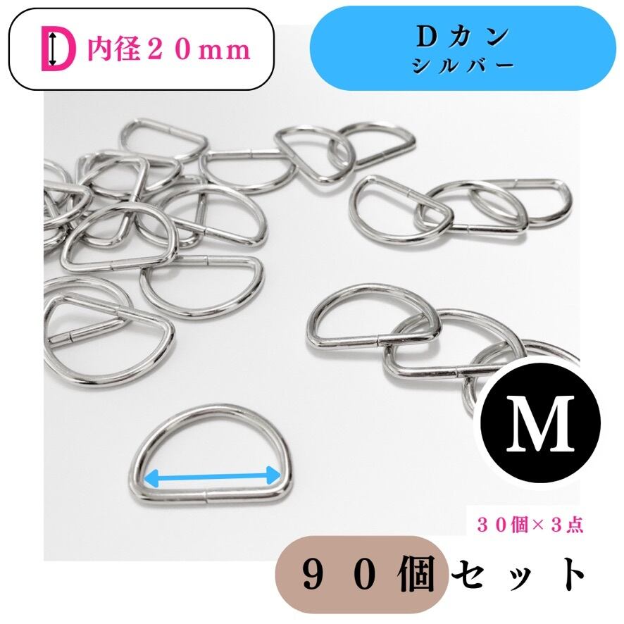 【全5色】Dカン 内径20mm 90個|ゴールド, シルバー, シルバーブラック, アンティーク調, ライトゴールド【30個入りより低単価】【各種割引有り】
